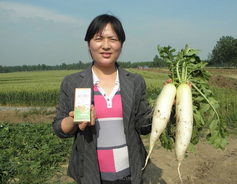 3月2日至6日,記者驅車(chē)數千里,在大蒜主產(chǎn)區山東金鄉、河南杞縣、中牟,花生主產(chǎn)區河南開(kāi)封、正陽(yáng)、內黃、延津、民權等地采訪(fǎng),所到之處,農技部門(mén)極力推薦,農民無(wú)不夸獎,易生科技“植物細胞裂變技術(shù)”之核心產(chǎn)品--“植物DNA激活酶”,被各地農民稱(chēng)贊為“地下狂長(cháng)”、“地下狂銀”、“地下狂增”、“地下狂金”的地下四狂,被譽(yù)為易生科技地下四寶。短短三年的時(shí)間,已被廣泛應用于地下塊莖、球莖、鱗莖等作物達千萬(wàn)畝次,通過(guò)葉面噴施2-3遍均能達到抗病、抗旱、抗凍、改善品質(zhì)、增加產(chǎn)量20—30%以上,個(gè)別作物可增產(chǎn)30—50%。記者在采訪(fǎng)中聽(tīng)到一位農技人員隨口說(shuō)出的一句順口溜:地下狂長(cháng)噴三遍,一畝能收一畝半。是農民對易生科技“植物細胞裂變技術(shù)”之核心產(chǎn)品--“植物DNA激活酶”神奇增產(chǎn)效果的總結和真實(shí)感言。農民高興的對記者說(shuō):“植物DNA激活酶”是當代農民打開(kāi)農業(yè)地下經(jīng)濟黃金寶庫的金鑰匙,是引爆農業(yè)根莖作物產(chǎn)量倍增的原子彈。
