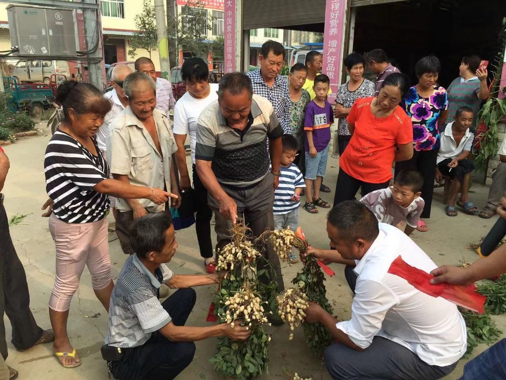 工作人員正在為我們噴施地下狂長(cháng)花生收獲好的農民頒發(fā)獎品。同時(shí)也祝賀我們易生科技地下狂長(cháng)“花生PK大賽”在襄陽(yáng)朱集鎮圓滿(mǎn)結束。